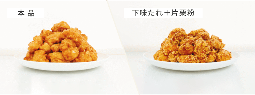 肉汁を逃さないので、油調時の肉の縮みが少なく歩留り抜群です。大きく揚がるので見栄えが良く、原料コストを抑えたいニーズを叶えます。