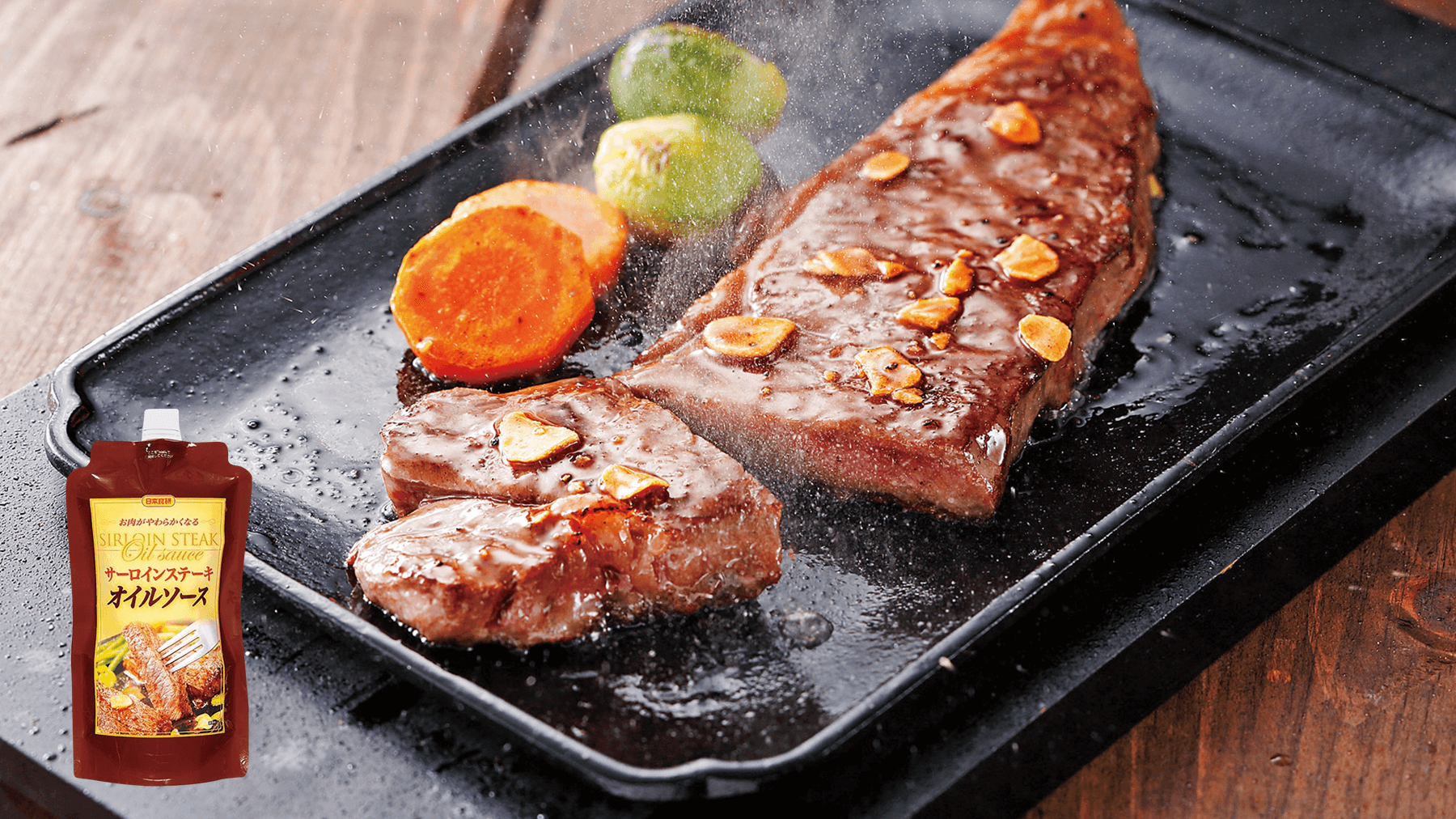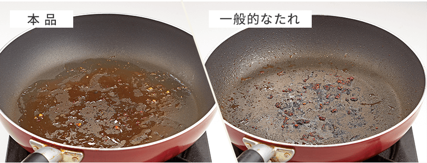 加熱調理の際は油をひく必要がありません。また糖類をほとんど含まないので、焦げにくく作業性も抜群。酵素入りやでんぷん入りは素材を柔らかくする機能も付与されています。 ※上段:一般的なたれ 下段:オイルソース