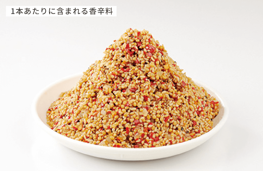 トッピング効果のある香辛料(唐辛子・胡椒・マスタード・ごま)を配合。ビジュアルでもおいしさを伝えます。