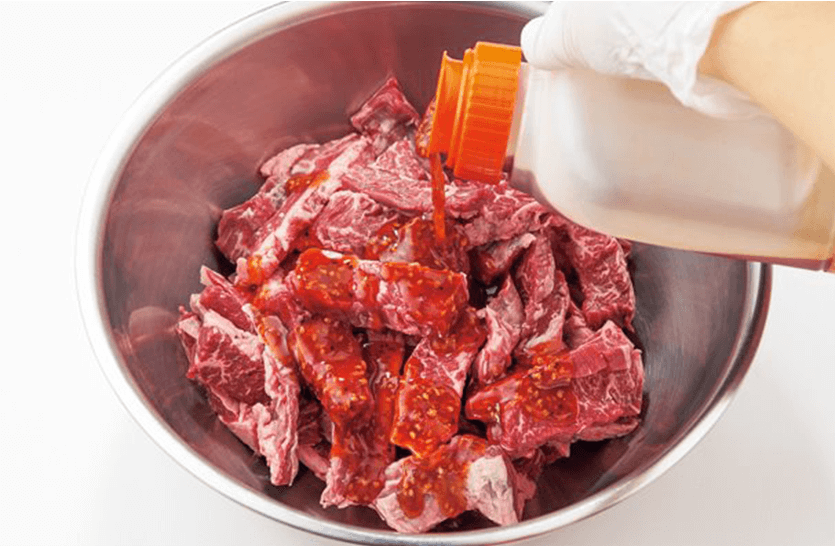 お肉に20~30%をからめるか、上掛けしてください。 炒め物には、味付けの際に適量を加えてください。