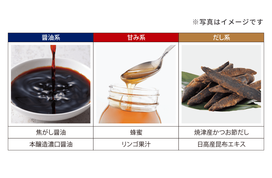 醤油や甘み、だし原料をバランスよく配合したおいしさです。