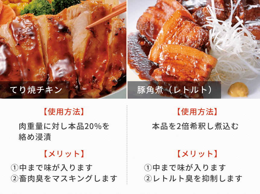 抜群の浸透力で、素材の中まで味が染み込みます。