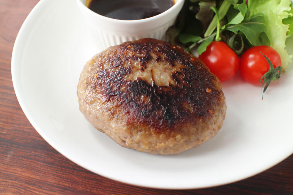 【炒めタマネギハンバーグベース】ソテーオニオン(国内製造)、砂糖、食塩、醸造酢、酵母エキス、濃縮りんご果汁、チャツネ/増粘剤(キサンタン)、酸味料、カラメル色素、香料、(一部に小麦・大豆・りんごを含む)