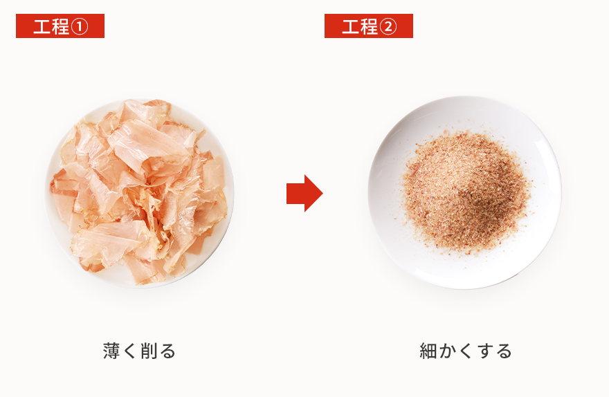 鰹節の香りを最大限に引き出すため、基本に忠実に、薄く丁寧に削ってから細かくしています。
