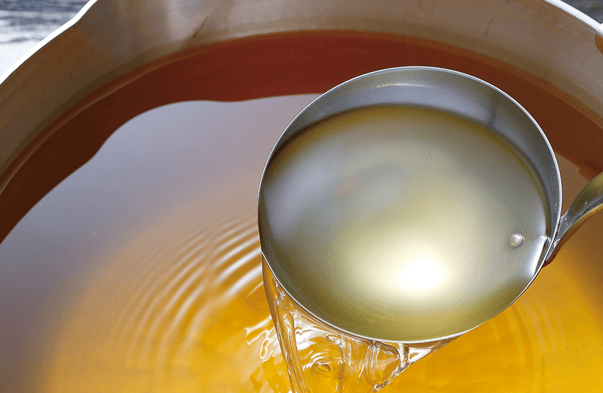 濁りの原因となる脂肪の多い鰹節は使用せず、また出汁はよく出て、出汁がらは通さない目の細かい不織布を使用。美しい澄んだ色に仕上がります。