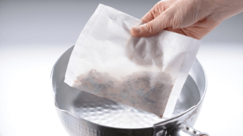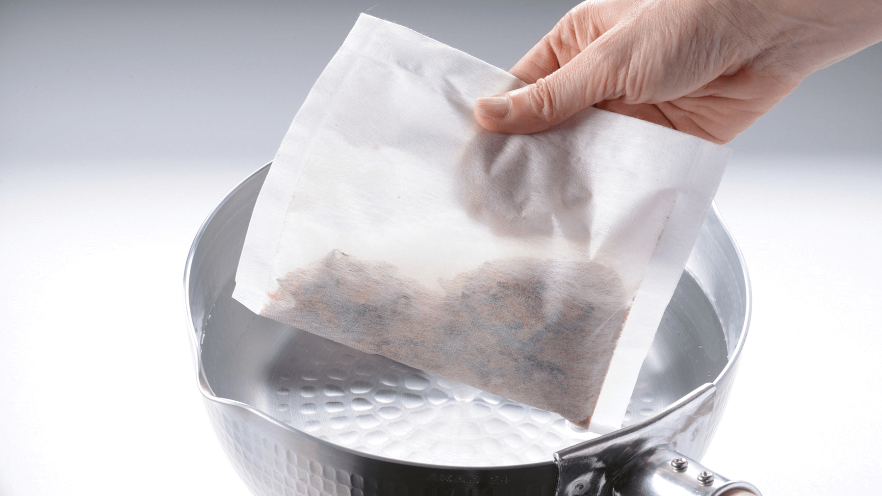 水2.5~5Lに対し本品1ヶを入れ、沸騰したら弱火で5分間煮出し、火を止めます。 その後、だしパックを絞らずに取り出してください。