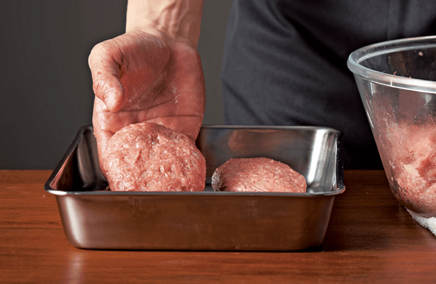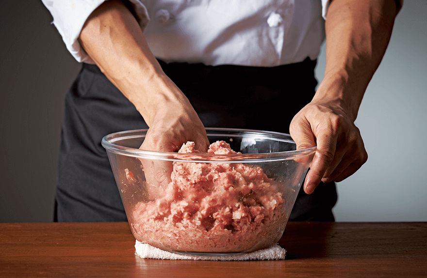 ふわっと柔らかいのに肉の歯ごたえと旨みを感じる。その秘密は、肉の温度を上げないように手早く肉とつなぎを合せる(浅ねり)製法です。