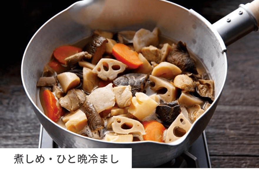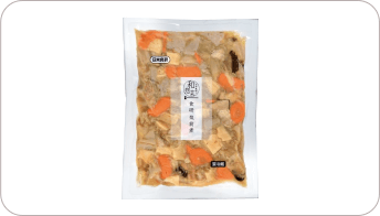手作り同様、煮しめた後ひと晩冷却することで、しっかりとした味染みを実現しました。 最後に醤油などで味を整え、丁寧に仕上げています。