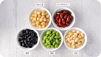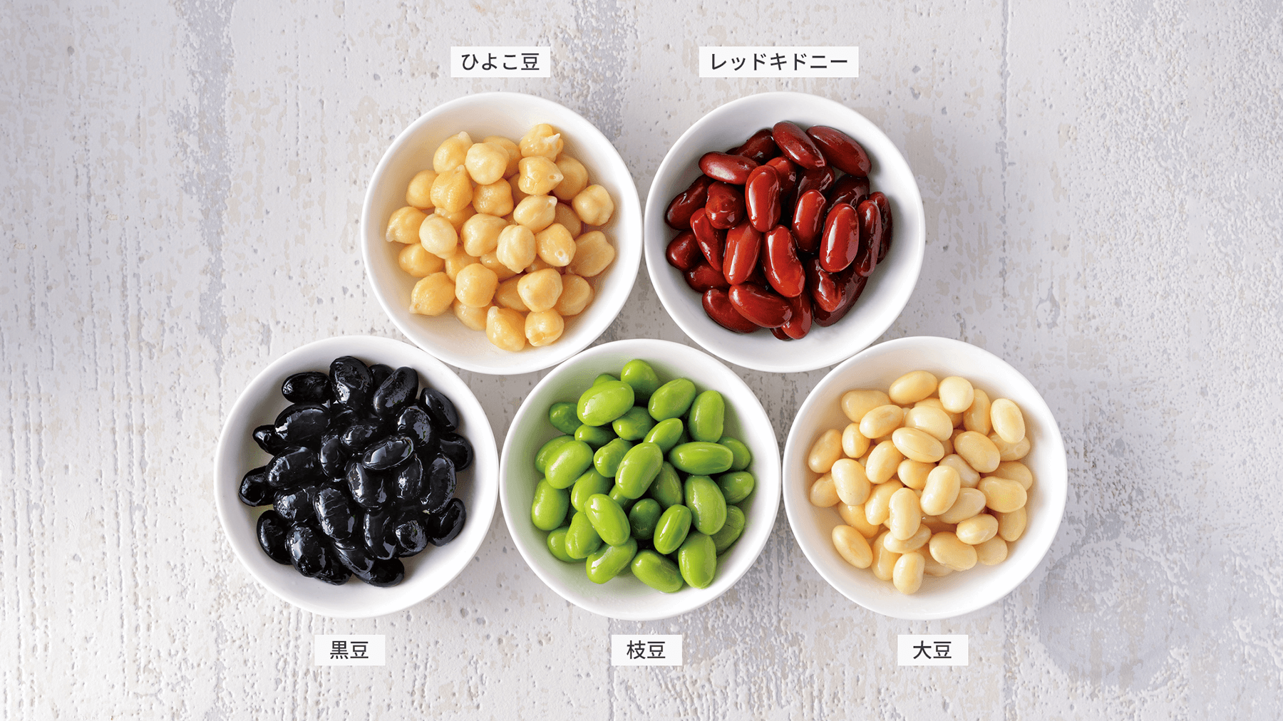 5種類の豆を使用し、多様な味と食感、彩りにこだわりました。豆の種類ごとの本来の味、色艶に仕上げています。